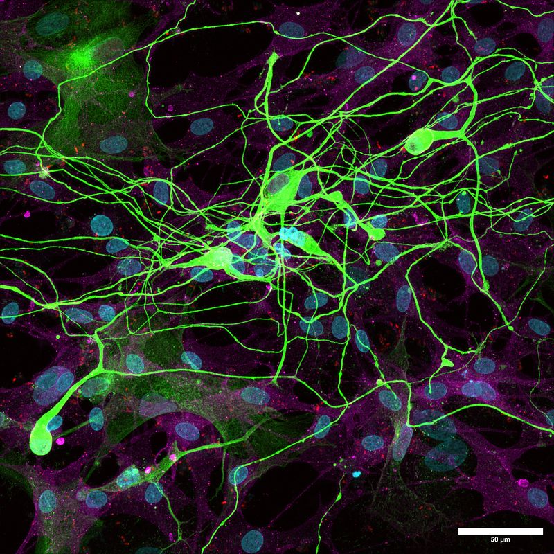 Sensory neurons generated from induced pluripotent stem cells (iSNs) are used to model human peripheral neuropathies, however current differentiation protocols produce sensory neurons with an embryonic phenotype. Peripheral glial cells contact sensory neurons early in development and contribute to formation of the canonical pseudounipolar morphology, but these signals are not encompassed in current iSN differentiation protocols. Here, we show that terminal differentiation of iSNs in co-culture with rodent Dorsal Root Ganglion satellite glia (rSG) advances their differentiation and maturation. Co-cultured iSNs develop a pseudounipolar morphology through contact with rSGs. This transition depends on semaphorin-plexin guidance cues and on glial gap junction signaling. In addition to morphological changes, iSNs terminally differentiated in co-culture exhibit enhanced spontaneous action potential firing, more mature gene expression, and increased susceptibility to paclitaxel induced axonal degeneration. Thus, iSNs differentiated in coculture with rSGs provide a better model for investigating human peripheral neuropathies.